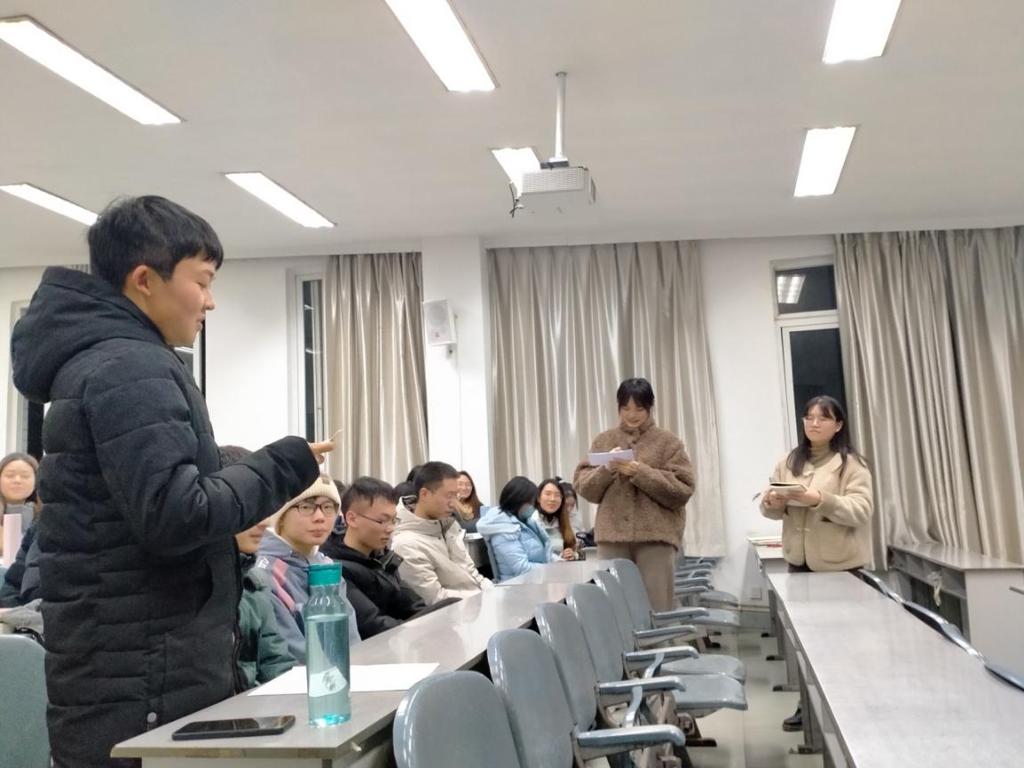 辅导员王文静分享自己学习的经验,并详细地阐述在学习过程中应注意的三个问题:选择合适的方向、制定良好的计划和保持平和的心态。最后,她告诫同学们期末考试即将来临,大家要自始至终全身心投入,预估复习时间,制定合理的日程安排表,注意克服烦躁、焦虑情绪的干扰,将自己的真实水平发挥出来。同时提醒同学元旦将至,要合理安排假期,疫情期间,出于对自己和他们负责,禁止前往疫情中、高风险地;尽量减少不必要的外出、避免参加聚会和集体活动