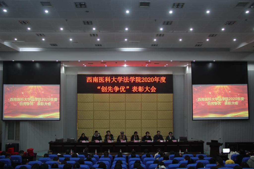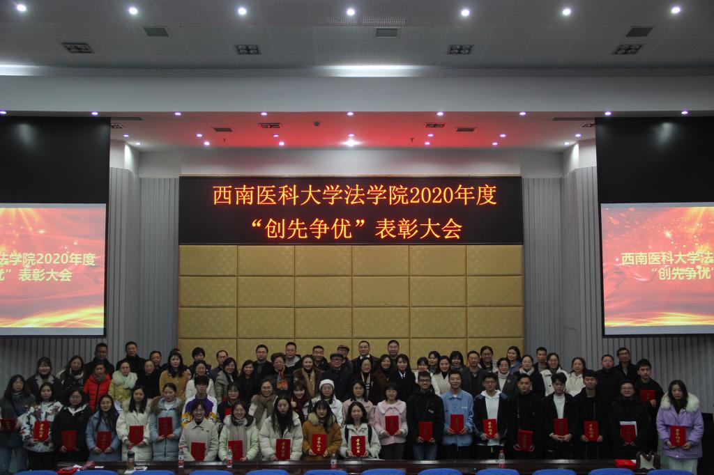 1月6日晚,法学院在城北校区逸夫图书馆举行了学院2020年度“创先争优”表彰大会暨“明炬”卓越法律人才奖助学金颁奖仪式。学校党委副书记刘毅,学校原党委书记、医事法学专业创始人石俊华,学校原党委副书记、司法鉴定中心主任、四川医事卫生法治研究中心主任、《医学与法学》期刊主编程文玉,四川明炬(泸州)律师事务所主任杨霞和律师代表,以及法学院全体师生出席了会议。大会由法学院党总支副书记黄莉主持。