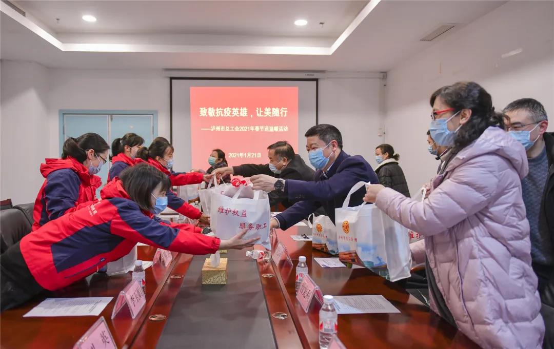 1月21日上午,泸州市委常委、统战部长、市总工会主席付小平,市总工会党组书记、常务副主席钟华贵,市总工会党组成员、副主席邵怡,kaiyun官方网站入口工会副主席陈先红等到附属医院开展“致敬抗疫英雄,让美随行”春节前送温暖慰问抗疫医护人员活动。
