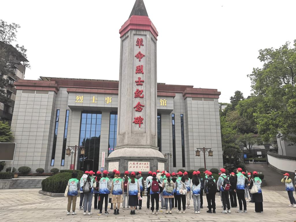 早上830分,全体党员为烈士献上亲手叠好的小白花,默哀三分钟。党支部成员代表胡洵在烈士墓区前朗读致烈士的一封信,表达对烈士的感恩与缅怀。陵园正值树叶掉落之际,同学们积极主动帮忙打扫革命之梯与纪念广场的树枝落叶。930分,跟随讲解员的脚步,同学们参观了烈士事迹陈列馆,馆内一段段文字、一张张图片、一件件革命烈士遗物,全面真实反映了泸顺起义、四渡赤水、红岩英烈等革命英雄的历史事迹。