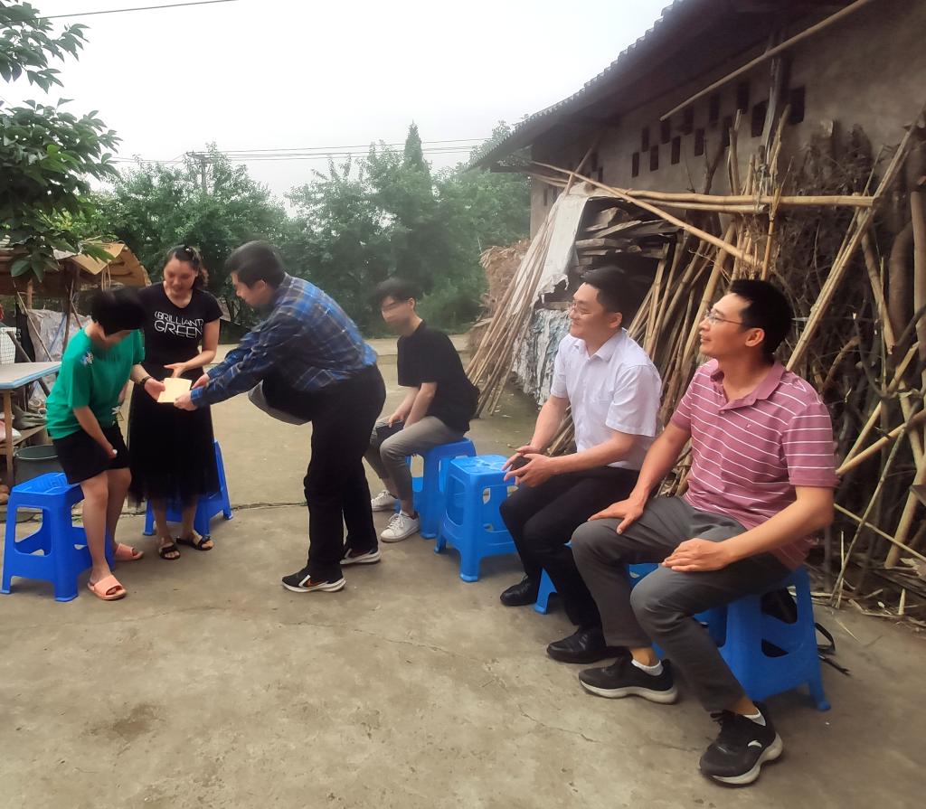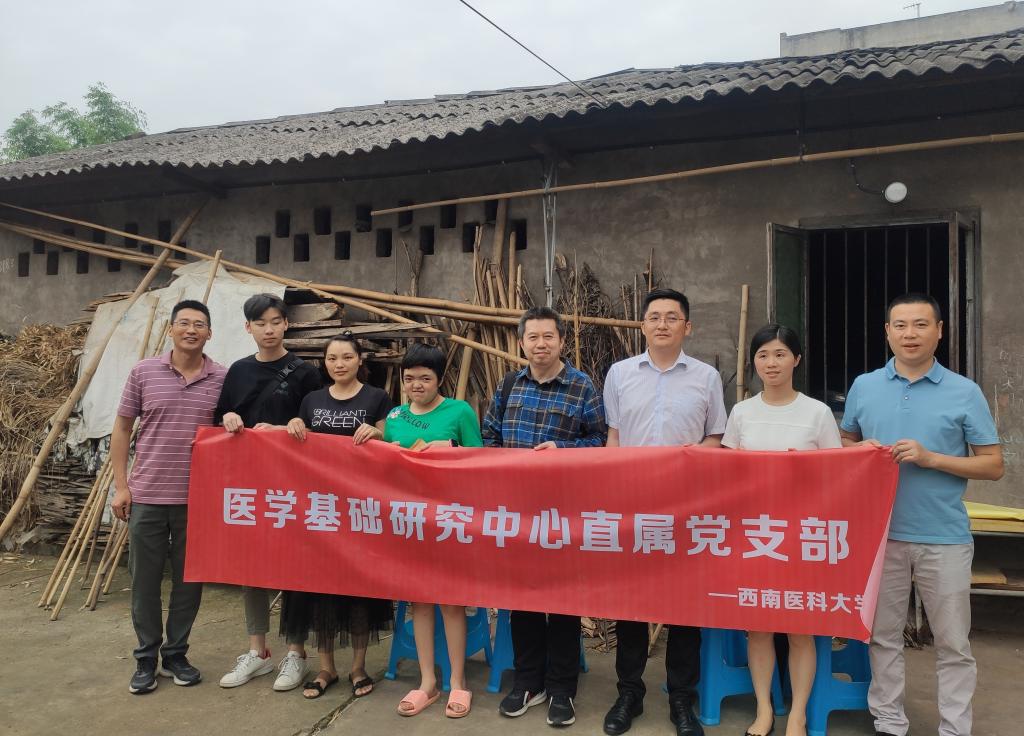 5月12日,kaiyun官网医学基础研究中心直属党支部、组织部和科技处的同志一行5人来到位于泸州市郊的江阳区邻玉街道兴隆村,看望慰问患有先天性双指(趾)并指(趾)畸型的学生李锦湘。