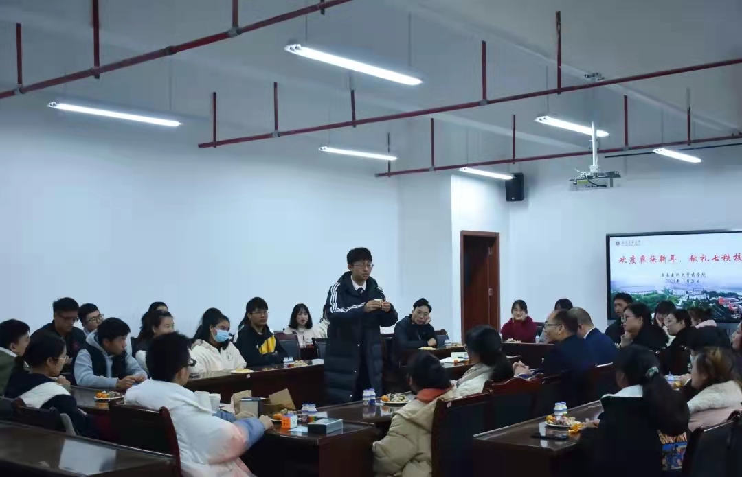 闫洁洁向彝族同学们致以节日的祝福。随后,彝族同学们分享了彝族的风俗习惯,如吃坨坨肉、喝酒、跳甲搓舞、篝火晚会。21级彝族学生卢小燕以一曲《欢聚》表达对大家新年的祝福,18级彝族学生杨凯代表彝族学生表达对学院的感谢之情,号召学弟学妹认真学习、不负光阴、学有所成,待来年衣锦还乡;19级彝族学生罗伍达说到自己已经连续七年未回家过彝族年,表达了对家乡的思念之情。20级汉族学生代表吴楠楠、21级汉族学生代表陈智成,为现场师生带来了魔术表演、魔方技术展示,座谈会氛围高涨。