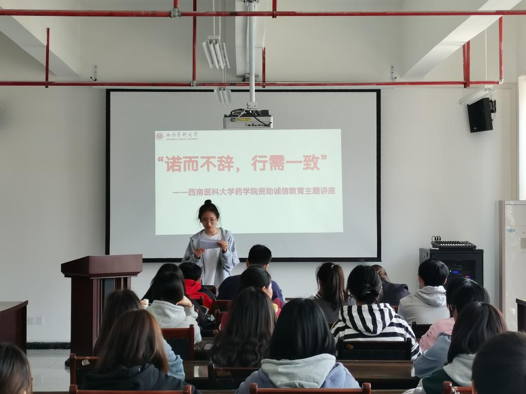 为引导学生诚实守信、珍爱信用,增强在资助工作中的诚信意识,树立正确的消费观、荣辱观、价值观,促进学院资助工作的顺利开展,近日,药学院在弘润楼532会议室,以“诺而不辞,行需一致”为主题,举办了资助诚信教育讲座。