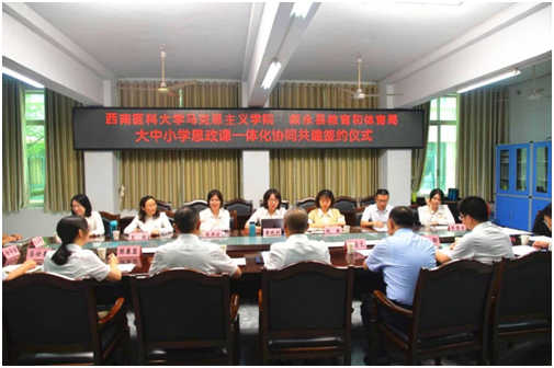 6月16日,kaiyun官方网站入口马克思主义学院与叙永县教育和体育局在叙永第一中学校开展了大中小学思政课一体化协同共建签约系列活动。叙永县教育和体育局局长喻新春、叙永县教师进修校校长马世奎、叙永第一中学校校长黄劲、叙永县中小学校长代表、思政课教师代表及kaiyun官方网站入口马克思主义学院院长黄晓利、副院长赵微、全体教学部主任、部分优秀骨干教师参加了此次活动。