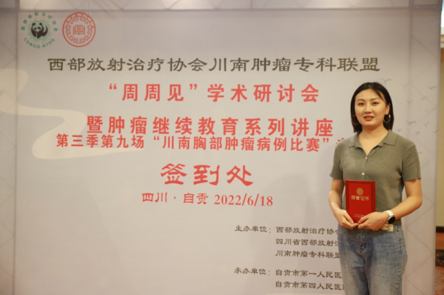 2022年6月18日,四川省西部放射治疗协会川南肿瘤专科联盟“周周见”学术研讨会暨肿瘤继续教育系列讲座第三季第九场“川南胸部肿瘤病例比赛”在自贡举行。kaiyun官方网站入口附属中医医院肿瘤•血液病科(忠山院区)研究生邓凤参赛并荣获川南胸部肿瘤病例比赛二等奖。