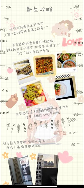 活动过程中,同学们用生动文字描绘丰富多彩的校园生活,用精美的配图展现美轮美奂的校园景色,每一篇手账都凝聚着同学们用心与爱心,将大学生活的注意事项都细致地标注了出来。每一个参赛作品都匠心独具、别出心裁,展现出了各位同学对学校、院系的独特见解和大学攻略。