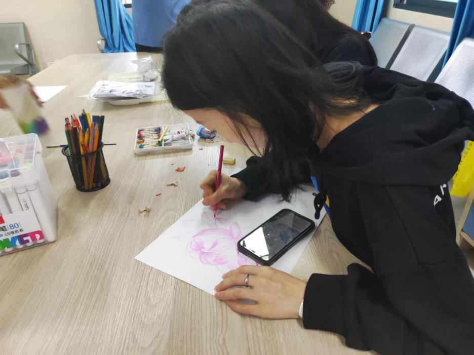 根据心身医学科患者的疾病特点,支部开展了多种游戏活动,包括团体跳绳、单人跳绳、兵乒球接力、打乒乓球、玩扑克牌、绘画等,通过这些活动既锻炼了患者的身体协调能力和人际沟通能力,还增强了团结合作精神,增加了亲子互动、夫妻互动等,对患者的情绪调节具有良好的促进作用。