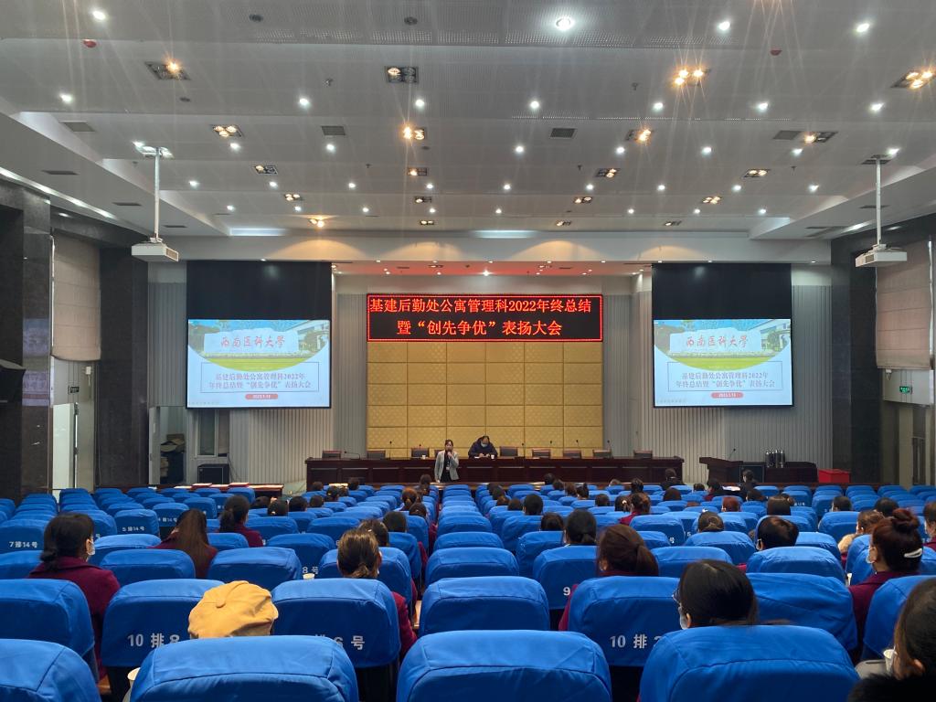 1月13日,基建后勤处公寓管理科在城北校区第二学术报告厅召开2022年终总结暨“创先争优”表扬大会。基建后勤处副处长陈勇、公寓管理科副科长(主持工作)曾庆彧及全体员工参加大会。