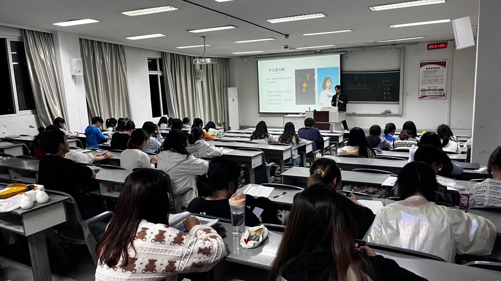 4月3日晚,“微光燃燃”志愿服务队队员杨文依托《医学生志愿服务培训与实践》课程,在全校开展以“浅谈摄影技巧与摄影技法”为主题的讲座,从大学生志愿服务的角度浅谈摄影基础知识、志愿服务摄影、简单后期技法以及人物和风光摄影,来自临床医学、法学、眼视光学和公共事业管理等不同专业共计80余位同学参与。活动由温艳青老师主持,且受到了全国学校共青团研究中心课题研究资助。