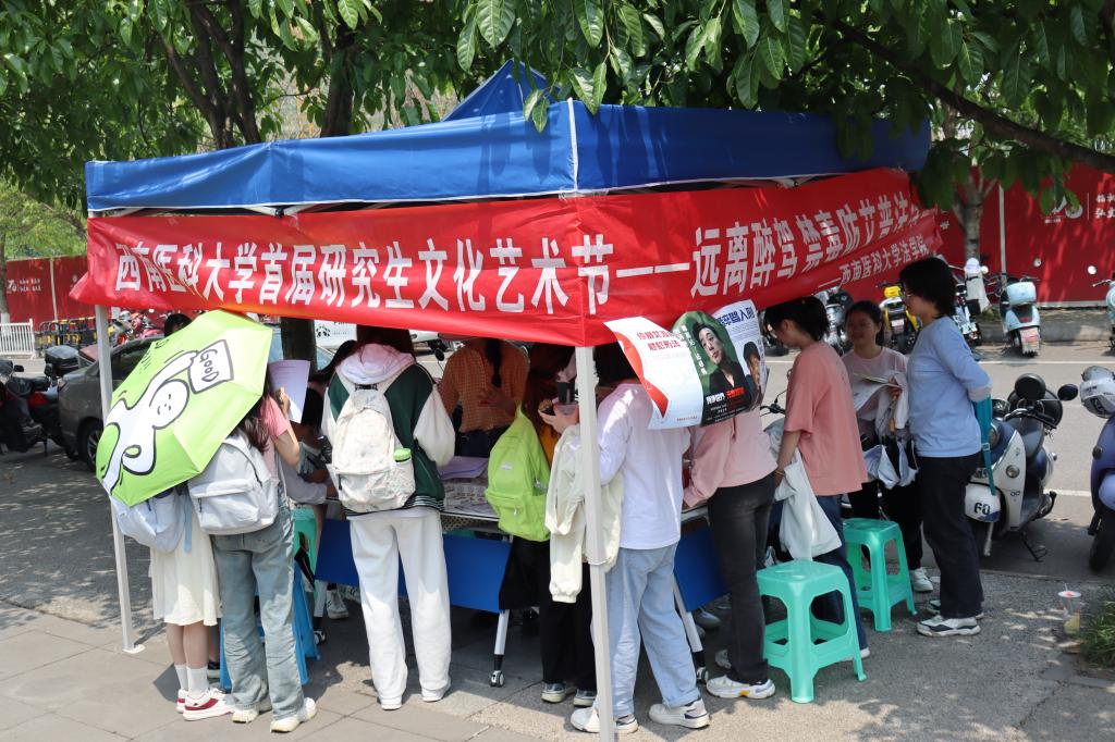 为了丰富艺术节活动内容,4月27日,kaiyun官方网站入口法律硕士研究生们组成了普法小分队,在兰香苑和桂香苑门口设置宣传点,开展了一场面向全校学生的“远离醉驾 禁毒防艾”普法宣传活动。活动主要通过发放科普折页、知识答题的方式进行,进而了解同学们对禁毒、酒驾、防艾的基本知识及相关法律法规的掌握程度,并对同学们的疑问进行当场解答,最后根据答题正确率发放艺术节纪念品。