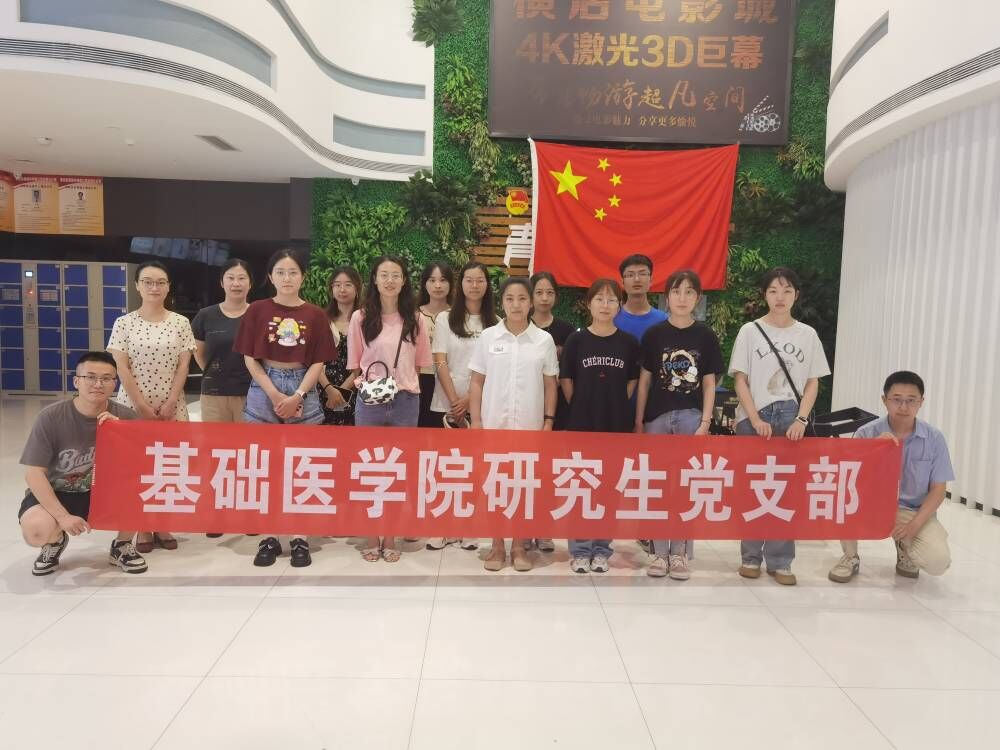 为深入学习贯彻习近平新时代中国特色社会主义思想和党的二十大精神,增强支部党员的历史责任感和时代使命感, 5月31日,基础医学院病生党支部和研究生党支部联合开展师生党员同观红色电影主题党日活动,两个支部的20多名师生党员在横店电影城观看了爱国教育主题电影《长空之王》。