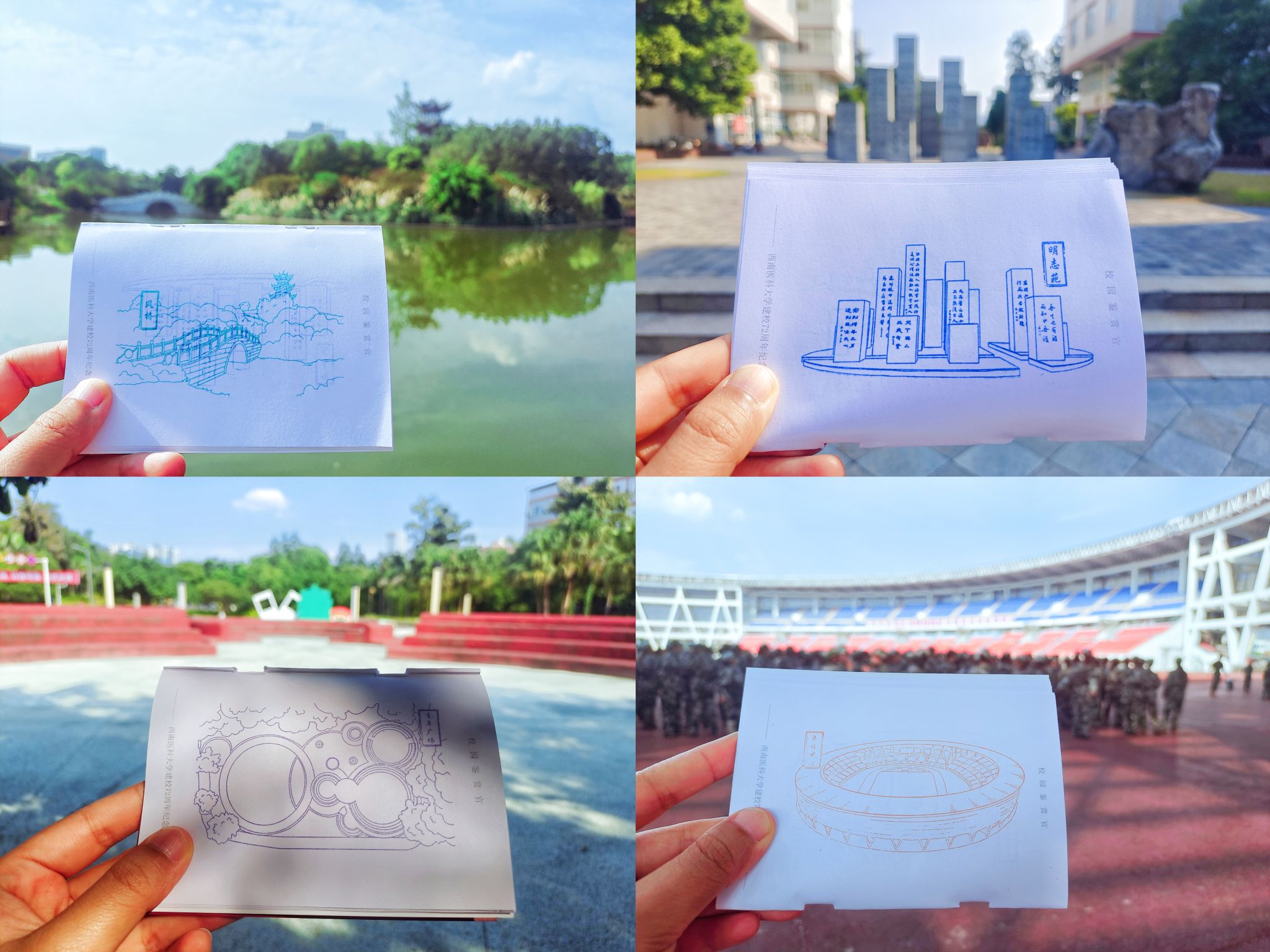 以氛围营造为载体,主打“情怀牌”。“西南医大,72岁生日快乐”“72载春华秋实,高质量发展永不停步”“72载风华正茂,‘138’开启奋进新程”“传承光荣传统,谱写时代新篇”……当师生们手举校庆纪念牌,在各个校园景观点位拍照打卡时,脸上都洋溢着灿烂的笑容。为了更好地营造浓厚校庆氛围,凝聚广大师生校友爱校荣校的情怀和力量,此次活动以师生喜闻乐见的方式,将情怀植入到底,不仅制作了纪念牌供师生拍照留念,还在两校区打造了氛围小品,引得师生积极参与、纷纷点赞。作为新生,2023级精神医学2班的席唯分享到:“活动结束之刻,看着精美的印章,归属感油然而生,心中不禁涌出一句‘你好,我的大学!’很幸运,我的19岁遇上西南医大的72岁,未来,希望通过自己的努力,真正成为一个‘厚德精业,仁爱济世’的西南医大人,不负青春,不负母校。”