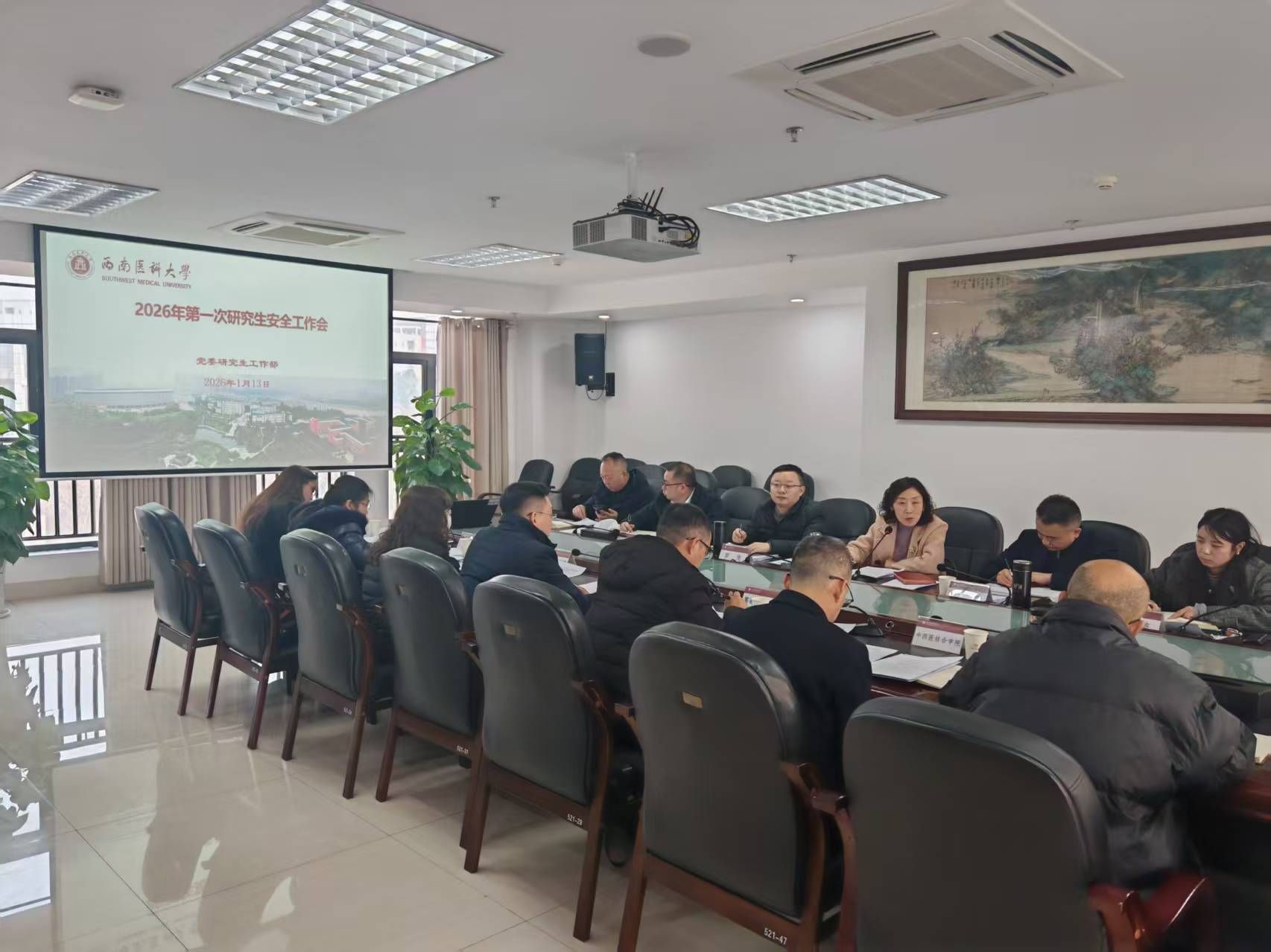 1月13日,学校2026年第一次研究生安全工作会议在德诚楼521会议室召开。党委副书记、校长何涛,相关职能部门负责人及各院(所)研究生学生工作分管领导、科室负责人、辅导员等参加会议。学校党委副书记蒋通荣主持会议。