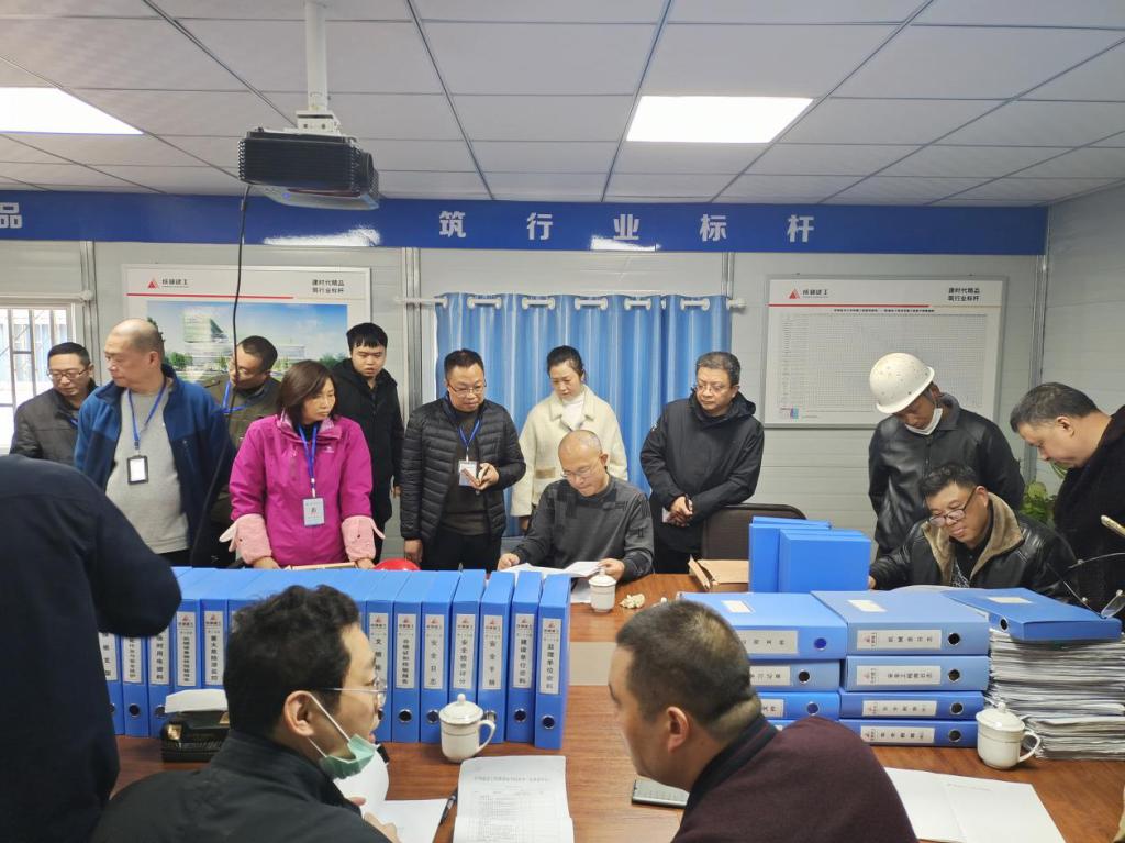 随后,检查组一行来到工地会议室检查相关资料。检查了建设单位施工前期办理施工图设计文件审查情况和质量监督手续情况,对勘查、设计、施工、监理单位履约管理情况和施工现场质量安全、扬尘治理监督管理情况,安全防护文明施工措施费履约支付情况等。检查了监理单位总监工程师资格及履职情况,项目监理部人员配置及到位情况;对施工过程安全文明施工、扬尘治理、施工组织计划实施及质量控制等监督管理情况。详细检查了施工单位项目负责人资格和履责情况,项目部人员配备及到位情况,施工组织设计或施工方案审批情况;专项施工方案的编制,质量控制方案及实施,安全文明施工组织以及危大工程安全隐患排查、应急演练,扬尘治理方案实施等情况。