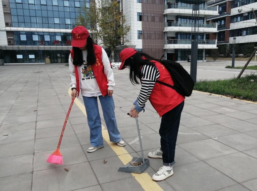 作为文明医大学子,志愿者们为校园整洁美丽作出了自己的贡献。