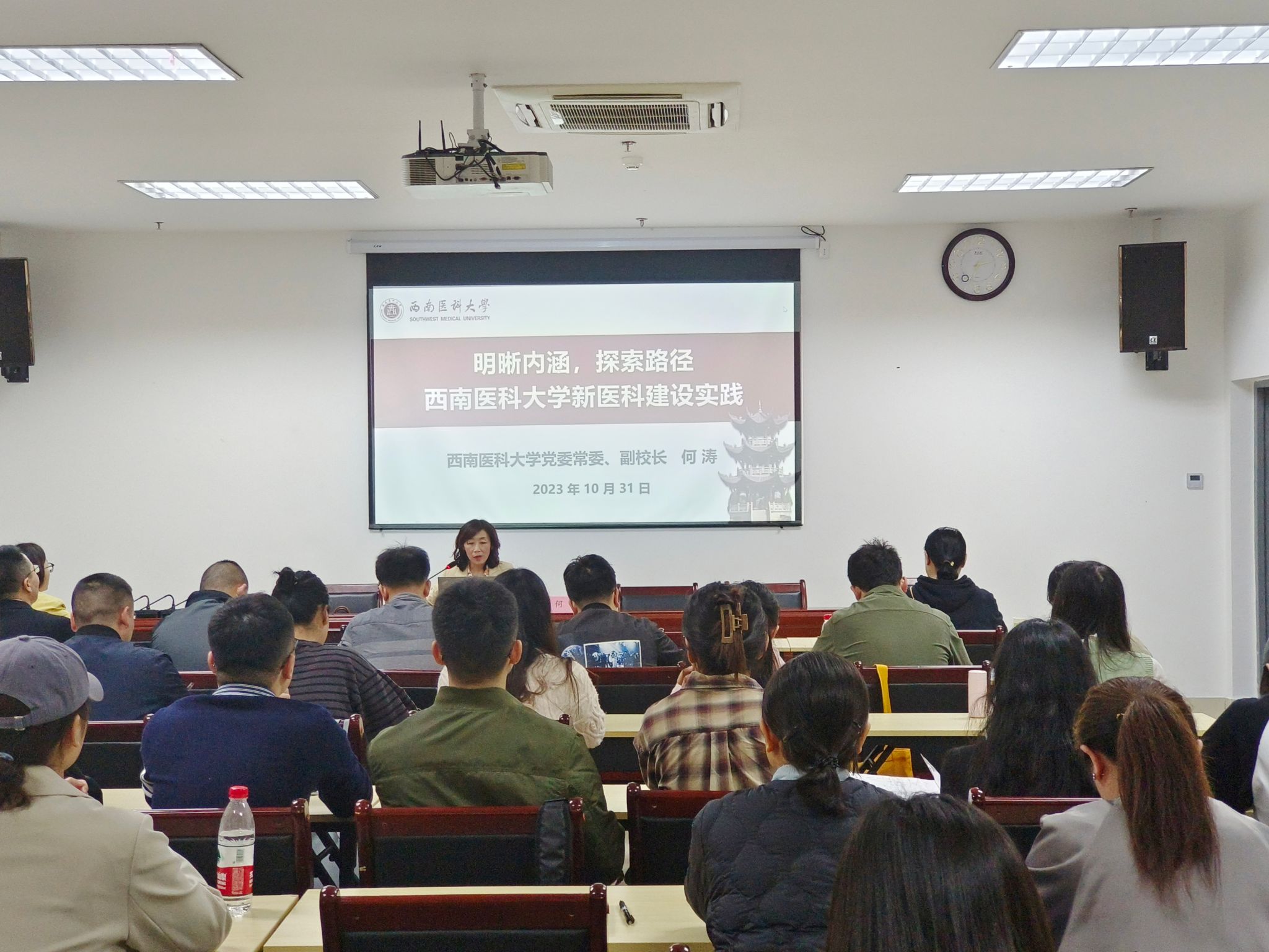 学校党委常委、副校长何涛作了《明晰内涵,创新路径——kaiyun官方网站入口新医科建设实践》专题讲座,介绍了新医科建设的背景、意义、内涵及kaiyun官网新医科建设的实践路径,引导新进教师扎根教学实践、探索教学创新,成为有情怀、责任、良知和温度的教育者。