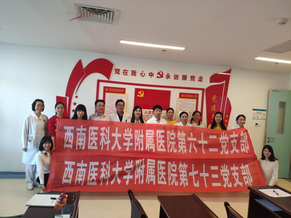 5月27日下午,附属医院第七十三党支部(医学检验系输血科党支部)前往康健中心院区心脏大血管外科开展“输血服务临床”系列活动之“学习党史促交流,重视输血保安全”主题党日活动,附属医院第七十三党支部及第六十二党支部党员参加。活动由心脏大血管外科主任、第六十二党支部书记于风旭主持。