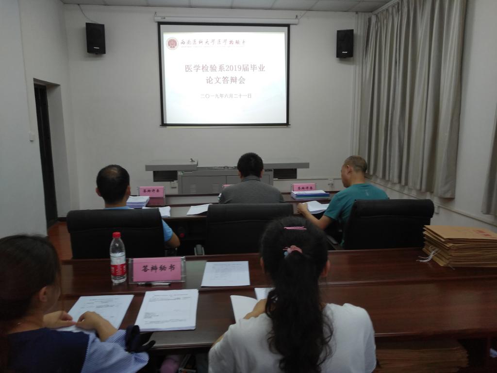 论文答辩是系统性工程,为了保障学生论文质量,提升学生的学术修养,医学检验系开展了阶段性的一系列工作。6月10日之前,动员学生自主论文查重,鼓励学生积极与指导老师沟通,进一步修改完善论文。陶华林高度重视学生毕业论文工作,6月14日对全体学生召开了“论文集体修改会”,事无巨细地讲解了毕业论文格式规范等。6月17日,对全体同学再次完善并规范格式的论文进行院系集体查重,并向教务处提交了“检测登记表”。6月18日至20日,学生提交答辩申请,全部审批“同意答辩”。6月21日,全天正式答辩,每个同学准备充分且认真对待,每个专家针对论文存在的问题给予专业性的指导,对质量高的论文也给出了称赞的点评。