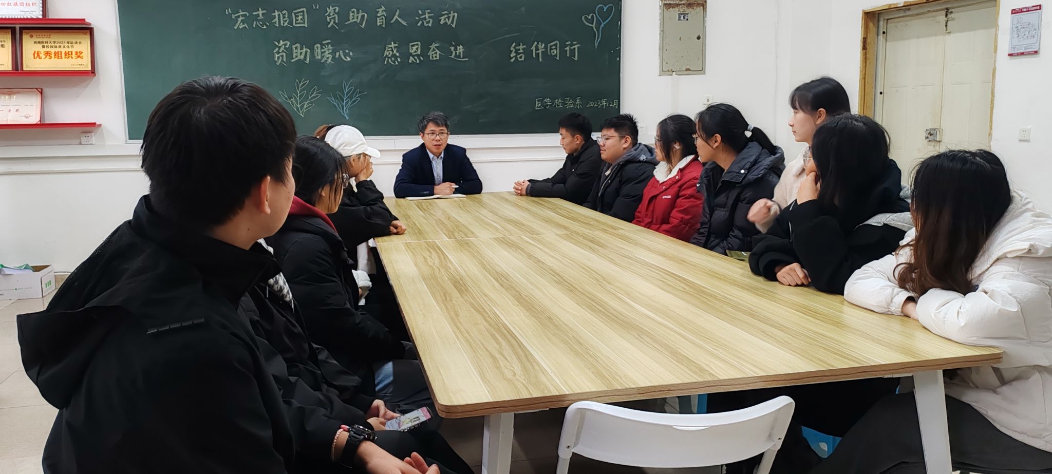 为切实做好资助育人工作,提升资助育人实效,12月15日,医学检验系在城北校区明理楼医学检验系学生科办公室召开“资助暖心、感恩奋进、结伴同行”为主题的资助育人座谈会。座谈会由学生科科长李尚学主持。