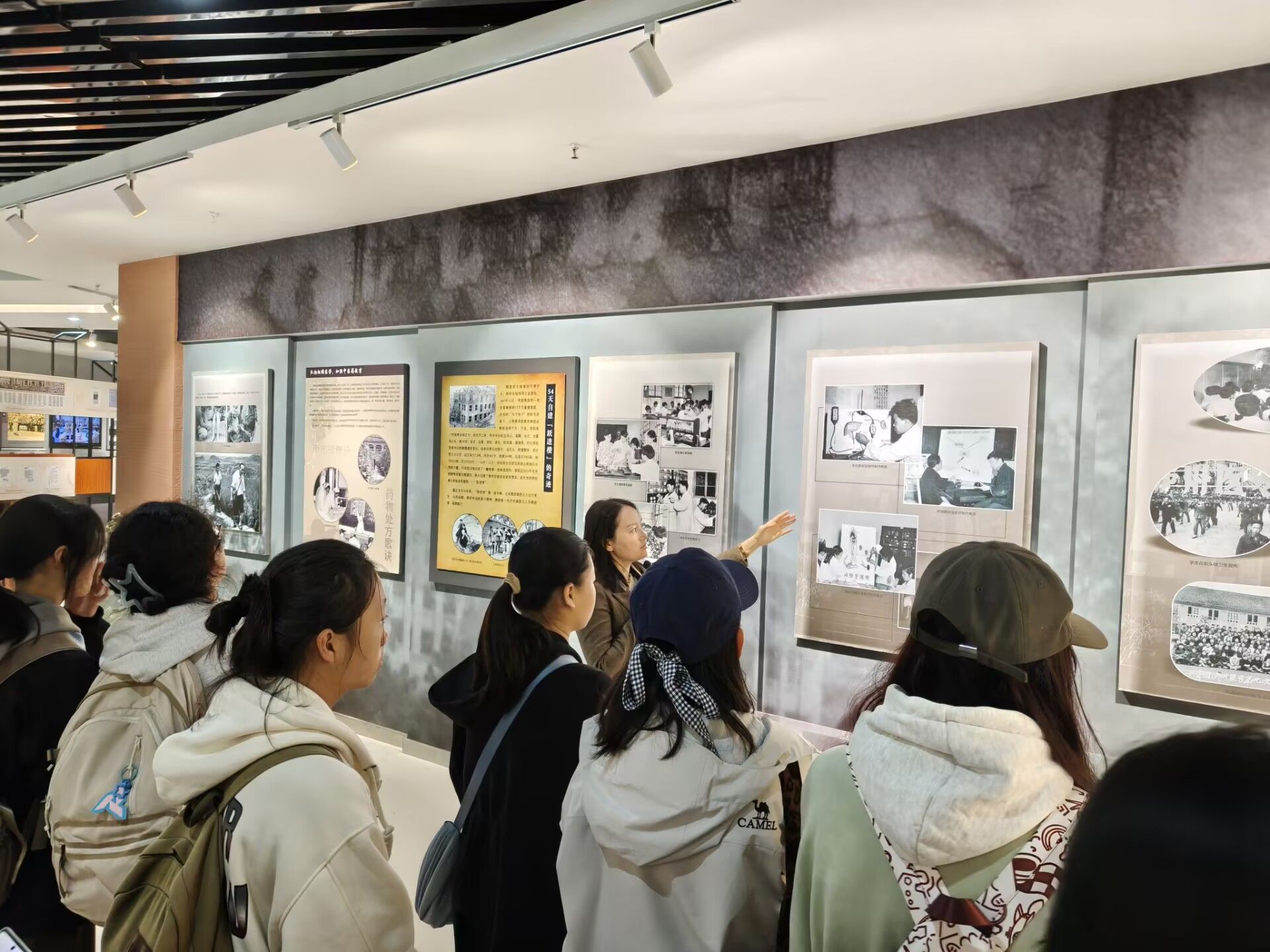 同学们在讲解员的引导下,依次参观“历史沿革”“教育教学”“社会服务”“文化传承”等主题展区。通过观摩珍贵实物、历史档案与影像资料,同学们系统了解了学校各历史阶段的奋斗历程,深刻感悟“厚德精业、仁爱济世”的校训精神,以及学校在人才培养、医学研究和社会服务等领域的卓越成就。参观过程中,同学们不时在展区驻足,为学校及优秀校友服务国家需求、守护人民健康的贡献深感自豪,现场氛围热烈浓厚。
