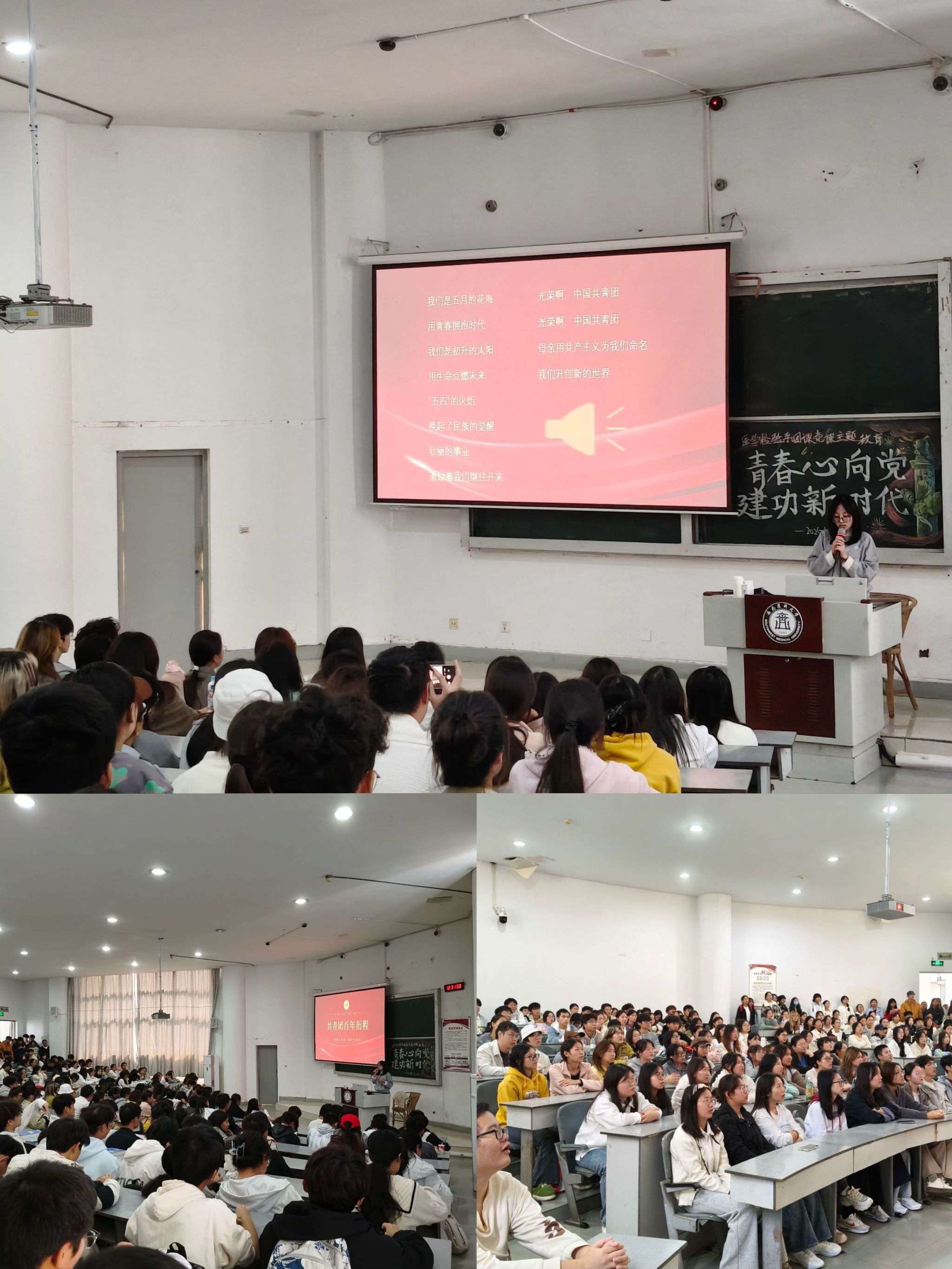 本次主题团课以共青团百年历程为切入点,系统讲解共青团的组织属性,深入阐释团旗、团徽、团歌的精神内涵,并梳理组织成员范围与创立发展脉络。随后,在“如何成为新发展团员”专题环节,围绕入团申请条件、团员义务,以及团内推优入党的具体要求开展细致解读。最后,本次团课教育活动在全体师生激昂的《光荣啊,中国共青团》歌声中圆满结束。