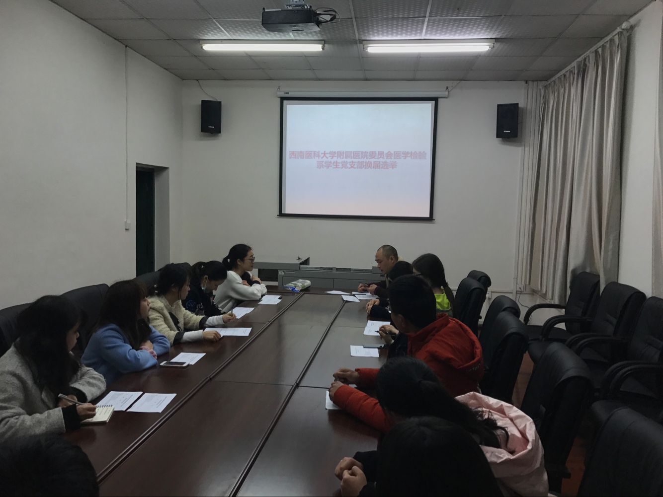 医学检验系学生党支部按照上级党委工作部署,于2017年2月28日在医学检验系会议室召开了支部委员选举大会,支部全体党员参会,其中校外实习党员同学采取同步电话参会,会议由学生科科长陈勇主持。