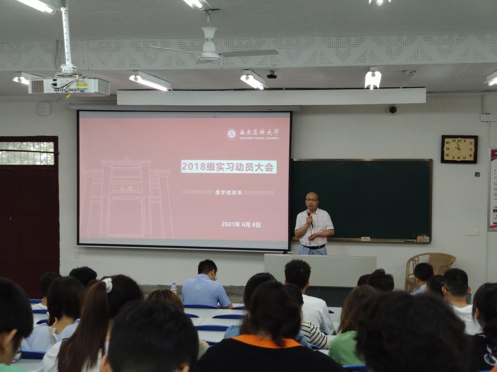 6月8日上午,医学检验系在忠山校区第5阶梯教室召开2018级医学检验技术专业实习动员大会。系党总支书记吕春、学生科科长李尚学、临床生化教研室主任田刚,以及2018级医学检验技术专业全体学生参加会议。会议由吕春主持。