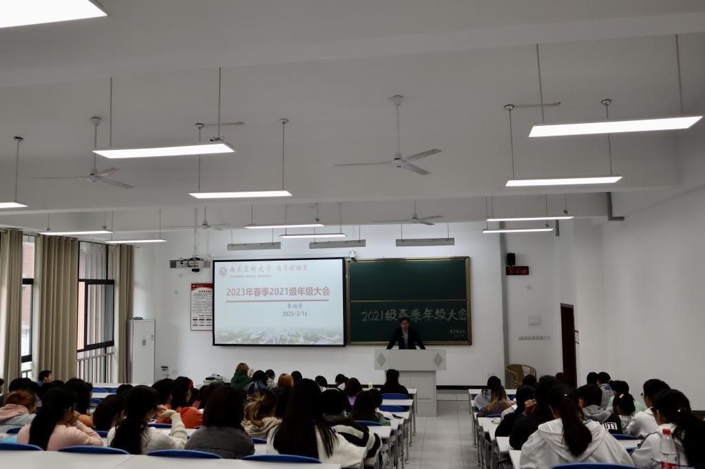 为进一步调动学生学习积极性,提升学生安全意识,3月16日,医学检验系在城北校区分年级召开年级大会。2021级年级大会由李尚学主讲,2022级年级大会由刘岩恕主讲。
