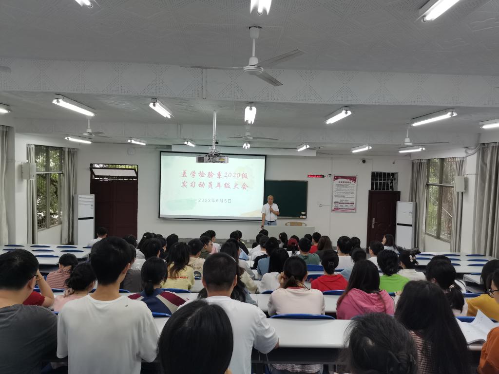 为进一步帮助学生适应实习阶段的学习生活,合理规划大学阶段最后一年的学习生涯,6月5日上午,医学检验系在忠山校区第6阶梯教室召开2020级学生实习前动员大会。医学检验系党政领导、学生科、基地实习指导教师及2020级全体学生参加。会议由系党总支书记吕春主持。