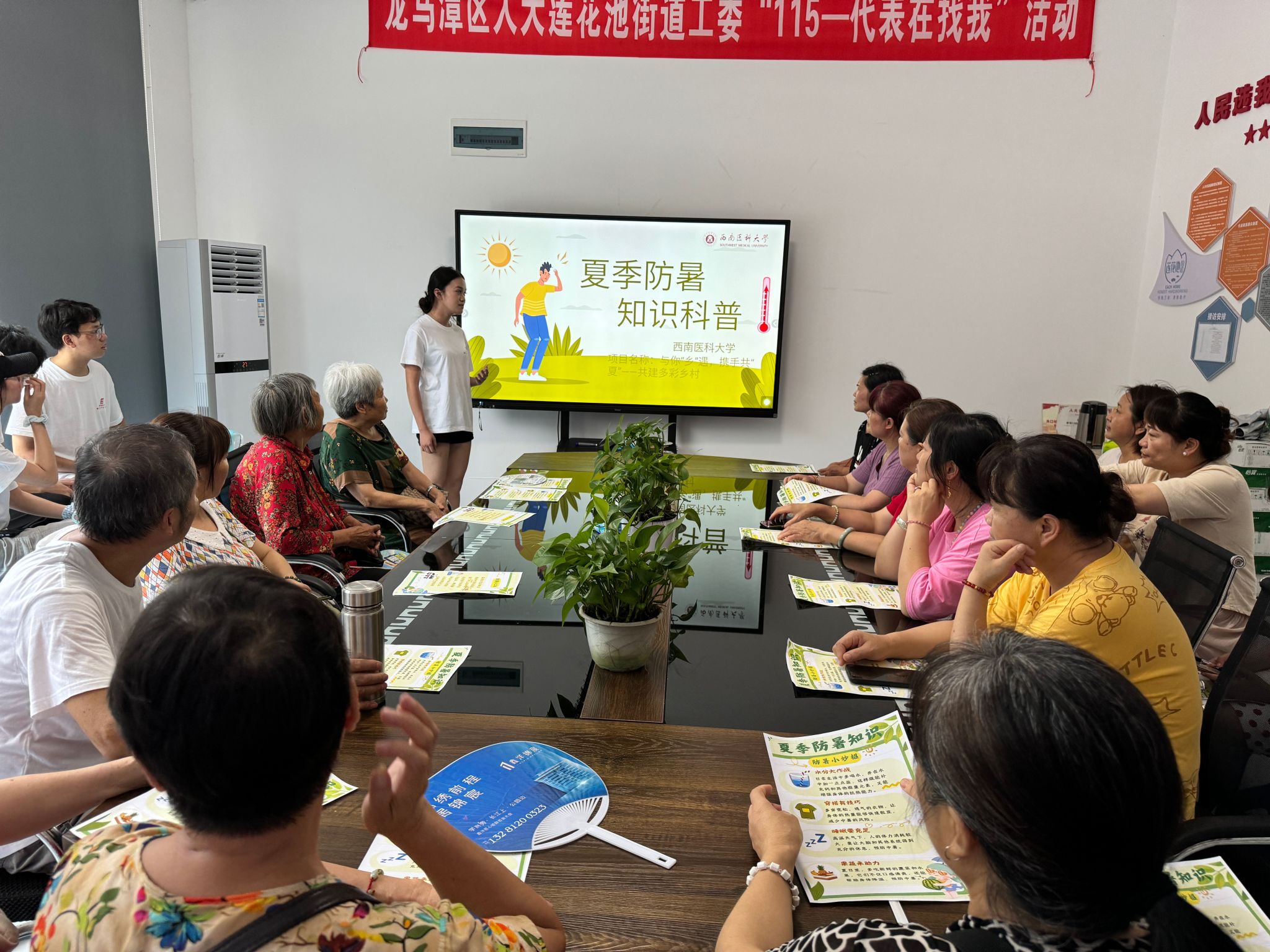 夏日炎炎,热浪滚滚。为预防夏季高温天气导致居民中暑死亡的事件发生,7月8日下午,医学检验系与你“乡”遇,携手共“夏”共建多彩乡村暑期社会实践队队员们走进泸州市龙马潭区莲花池街道关口社区为社区居民开展防中暑医学科普宣传活动。