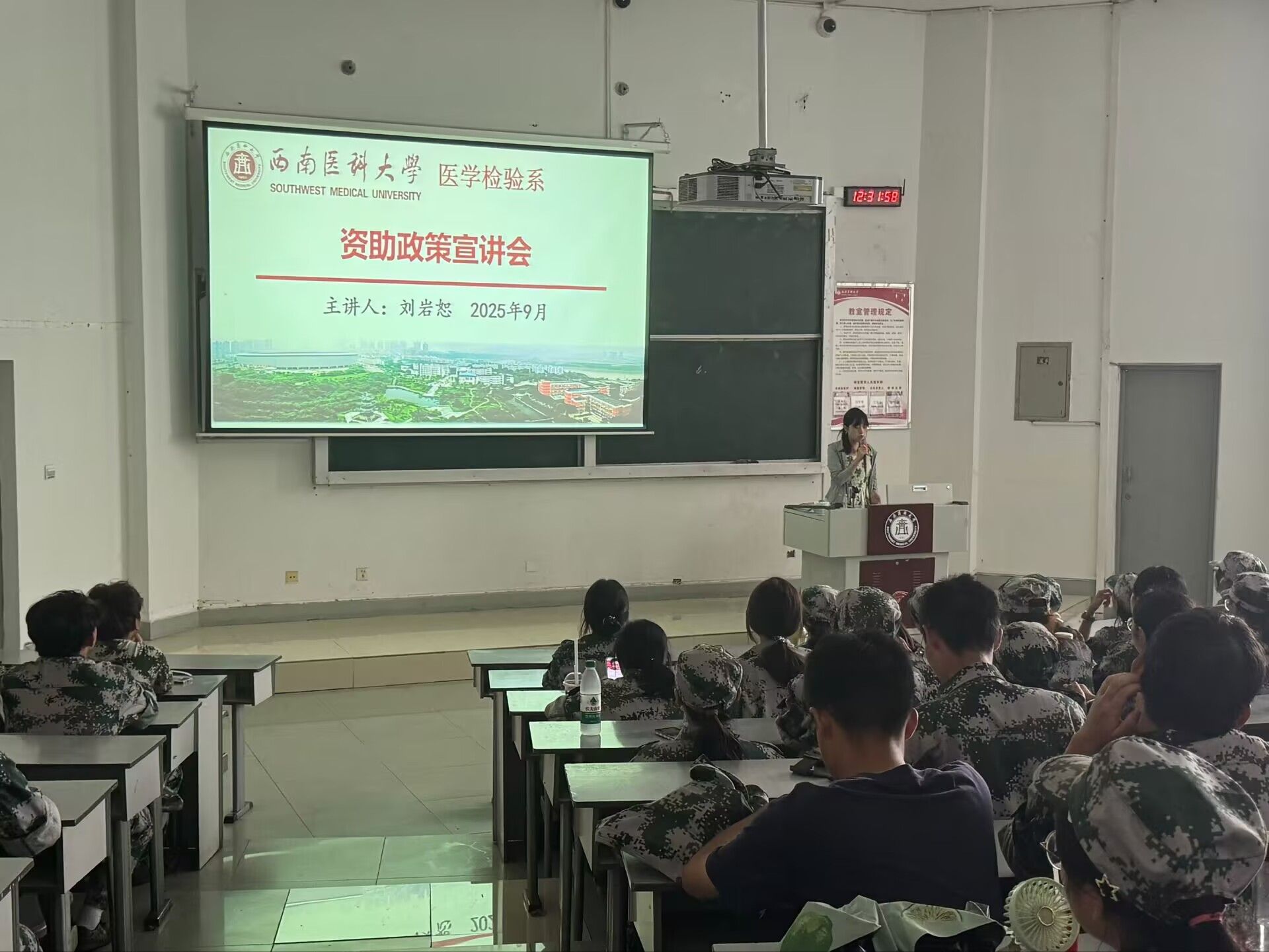 为让2025级医学检验技术专业新生全面了解学校资助政策,9月11日,医学检验系于明理楼105教室开展学生资助政策宣讲会,主讲人刘岩恕为新生详细解读资助政策。