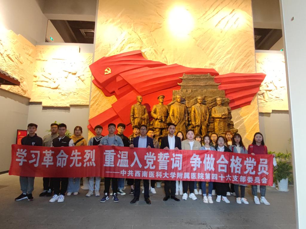 4月15日下午,为缅怀革命先烈,传承红色基因,不断厚植爱党爱国情怀,扎实推进党史学习教育,附属医院第四十六党支部(医学检验系学生党支部)组织党员、预备党员20余人前往泸顺起义纪念馆开展“学习革命先烈、重温入党誓词、争做合格党员”党史学习教育。支部书记李尚学、支委刘泸等参加。