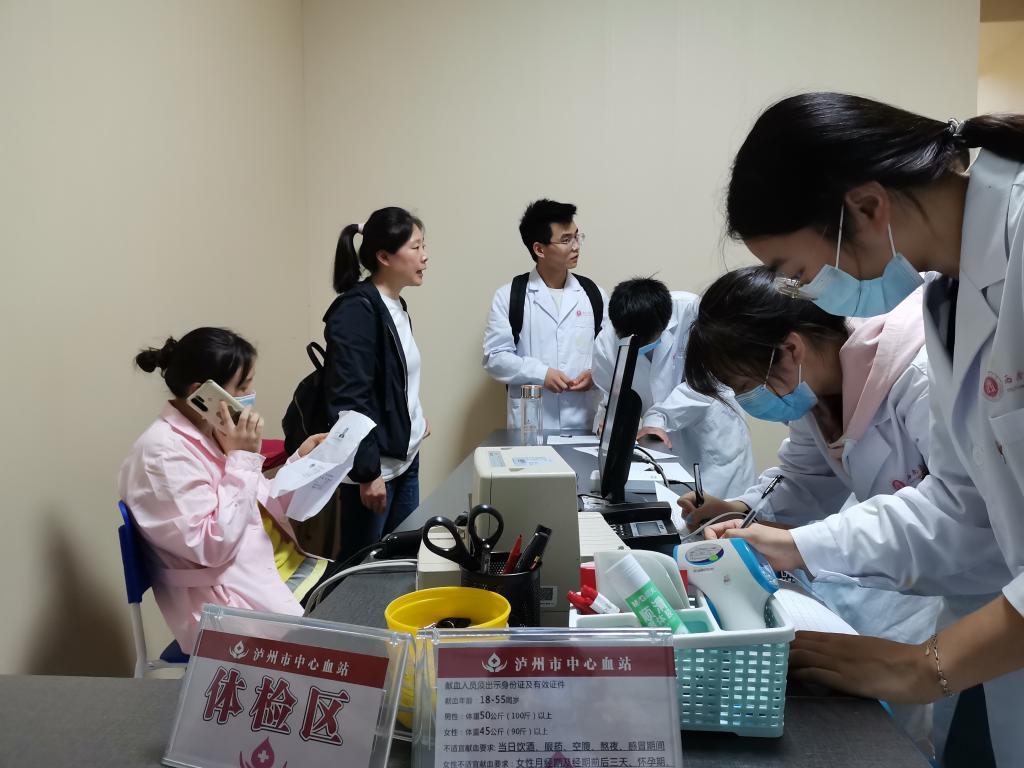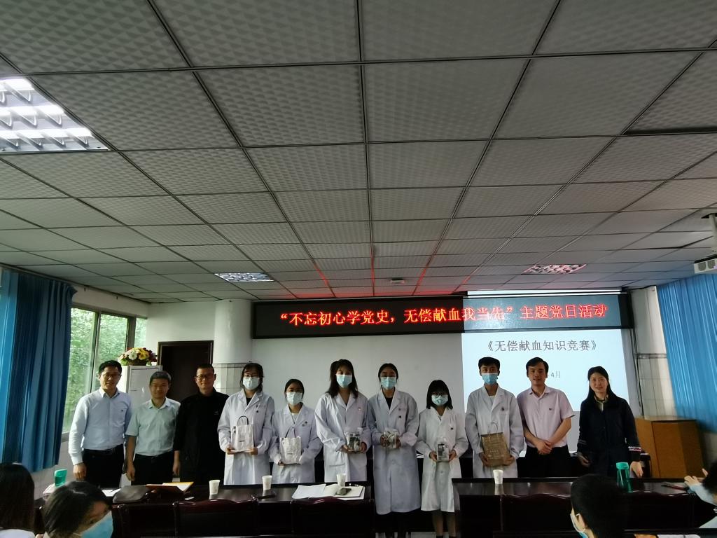 4月29日,附属医院第73党支部(输血科党支部)和第46党支部(学生党支部)全体党员和医学检验系30余名学生(主要为发展对象和入党积极分子)前往泸州市中心血站开展“不忘初心学党史,无偿献血我当先”主题党日活动。活动由第73党支部书记张洪为主持。