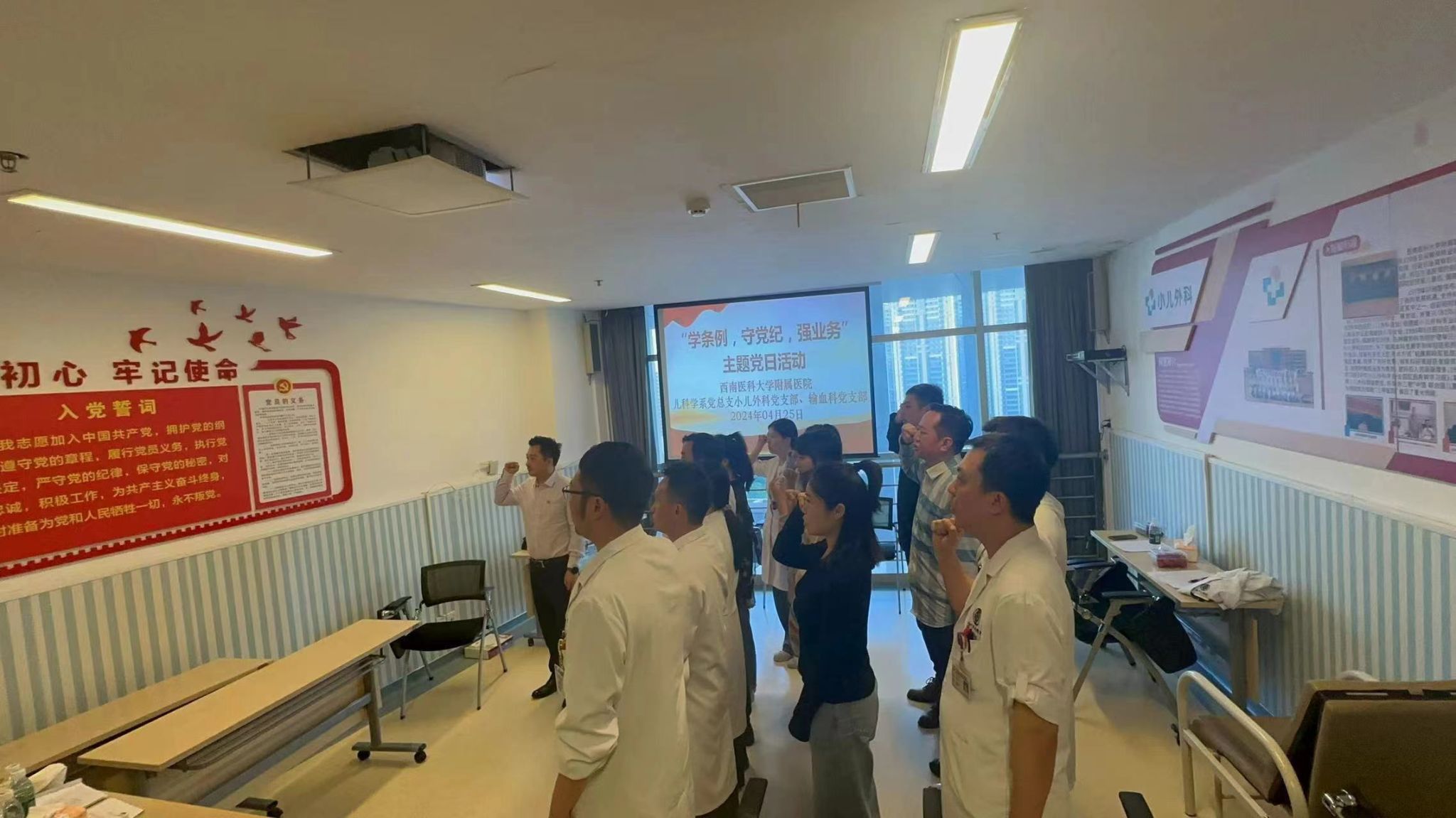 附属医院输血科党支部和小儿外科党支部联合开展“学条例,守党纪,强业务”主题党日活动