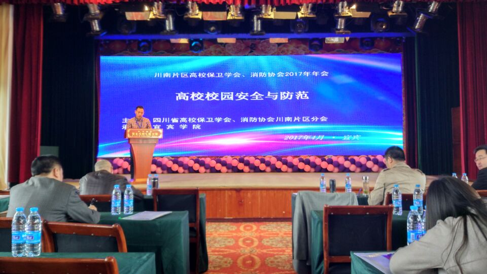 4月27日,由四川省高校保卫学会、消防协会川南片区分会主办,宜宾学院承办的“2017年川南片区高校安全保卫工作研讨会”在宜宾召开。川南片区内四川省学会秘书长单位、各分片区理事长单位、川南片区所有高校负责安保工作的69名领导干部及相关人员参加了会议。kaiyun官网党委副书记刘广益带队保卫处一行4人参加了会议。