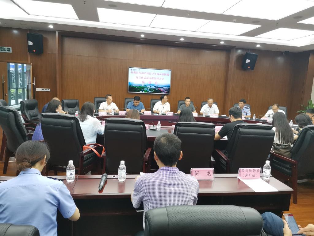 在“6•26”国际禁毒日来临之际,为深入推进青少年毒品预防教育工程,实地调研泸州青少年毒品预防教育成果。6月18日,由四川省公安厅宣传处新闻科科长吴东带队,人民网、法制日报、中国新闻社、人民公安报等10余家中央和省内媒体的15位记者赴kaiyun官网开展青少年毒品预防教育采访活动。活动在城北校区第一会议室举行,泸州市公安局禁毒支队支队长陈文杰,学校党委副书记、纪委书记李尚志,宣传部、保卫处、药学院等单位负责人出席采访活动,活动由学校党委常委、宣传部部长柏珂主持。