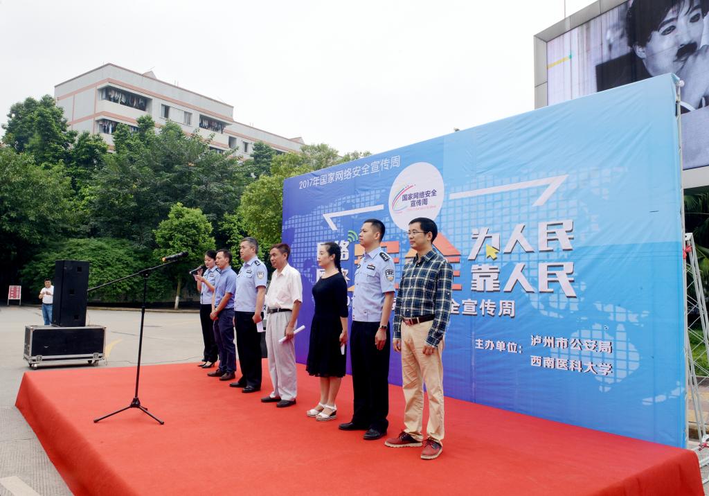 9月24日上午10时,由泸州市公安局和kaiyun官方网站入口联合主办的2017年国家网络安全宣传周活动在kaiyun官网城北校区青年广场举行。党委副书记刘广益、泸州市公安局常务副局长聂海波、泸州市网信办副主任蒲雪莲、学校保卫处、现代教育技术中心等部门负责人,泸州市公安局网侦支队、龙马潭区公安分局等相关单位和部门有关人员及400余名学生代表参加了活动。
