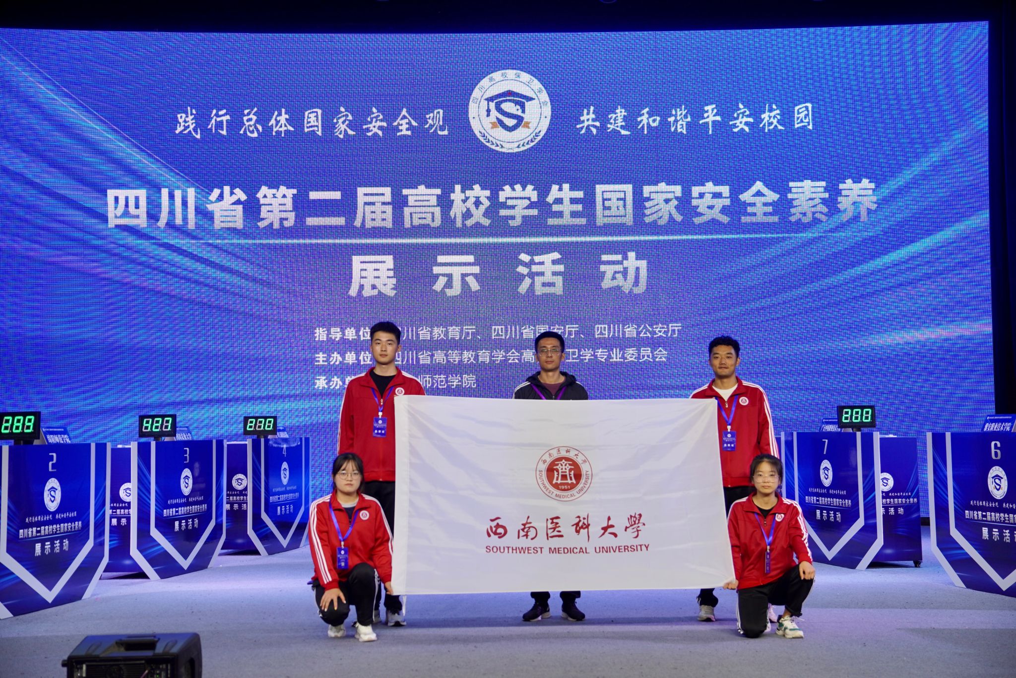 10月27日-29日,由四川省教育厅、国安厅、公安厅指导,四川省高等教育学会高校保卫学专业委员会主办,乐山师范学院承办的四川省第二届高校学生国家安全素养展示活动成功举行。来自全省18所高校参加,kaiyun官方网站入口代表队由保卫处廖磊同志担任领队,队员由基础医学院2022级周利坤、药学院2022 级罗秋月、中西医结合学院2022级吴红、体育学院2022级杨孟坤4名学生组成。