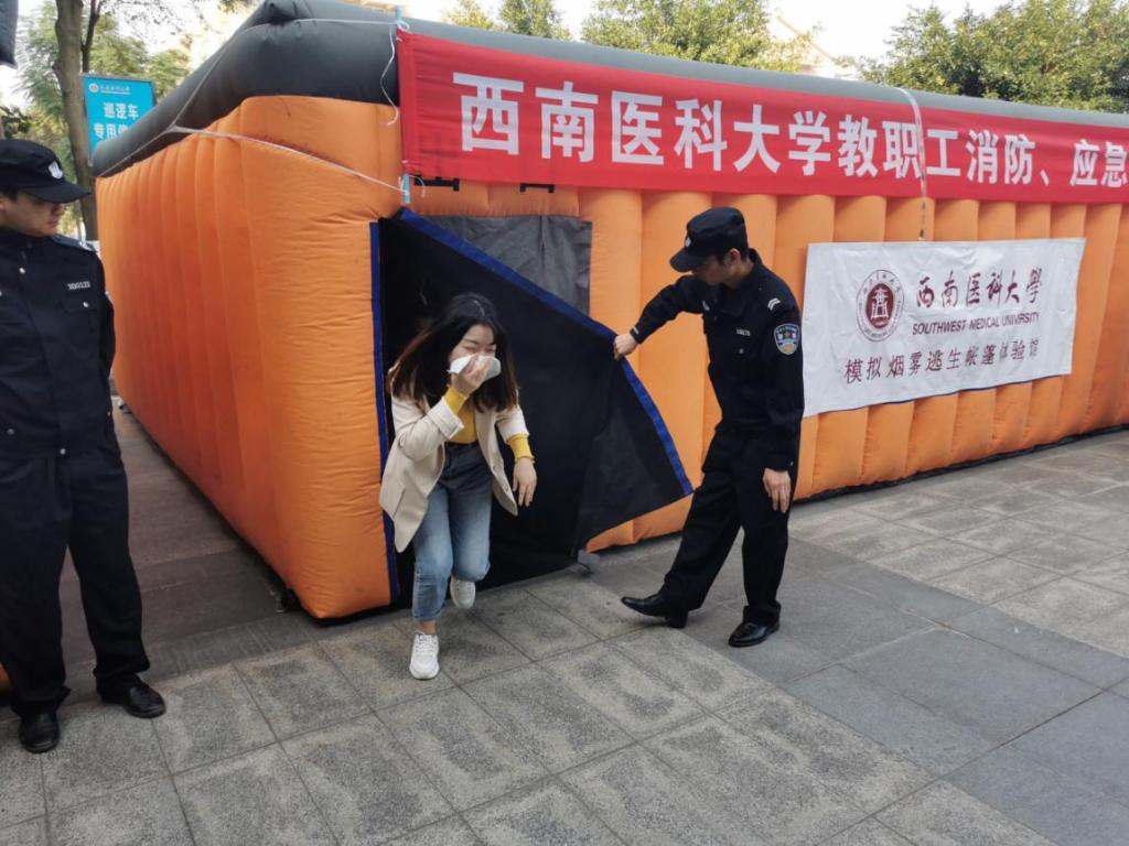 据悉:为提高全校师生员工的消防安全意识和掌握应急逃生能力,保卫处今年申请专项经费11万余元,购置了模拟灭火装置和应急生帐篷一套,10月中旬开始投入使用,已对3000余名2020级新生进行了培训演练。